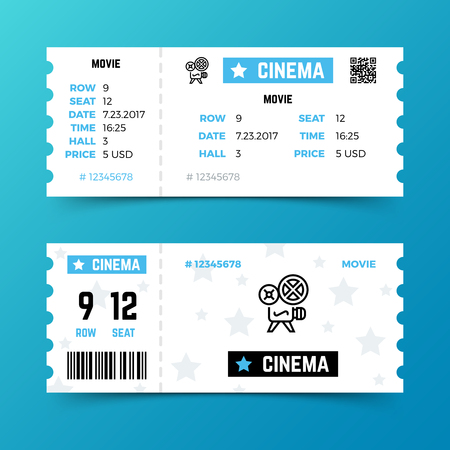 現代の映画の映画のチケットは デザインをベクトルします 映画館ホール 3 D 映画イラストへの航空券のイラスト素材 ベクタ Image